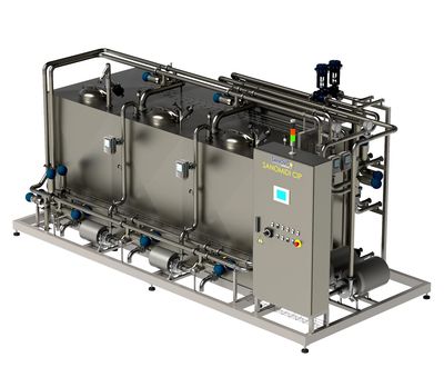 The CIP is mounted so can be easily moved and provides layout flexibility. In addition to having full control of the cleaning operation. The cleaning process is simple as it is completely controlled by a PLC allowing for a high efficiency, in addition to the SANOMAXI being able to clean 2 lines at any one time reducing the cleaning time.