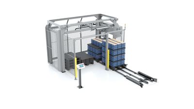 The de-palletizer has a flexible design to be able to fit a wider range of layouts.
